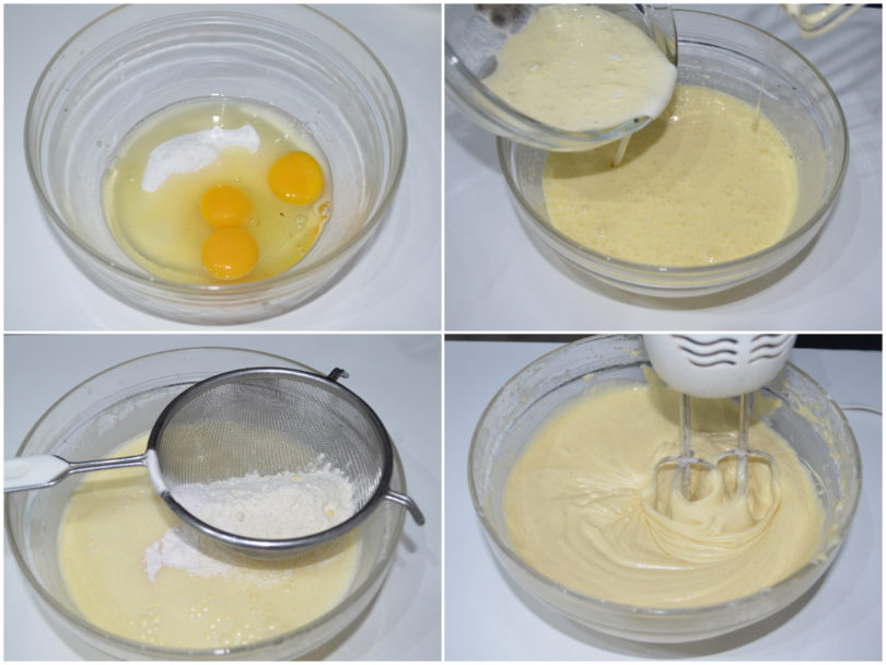 A parte unite tra di loro olio, latte, panna e vaniglia, quindi incorporateli alle uova.