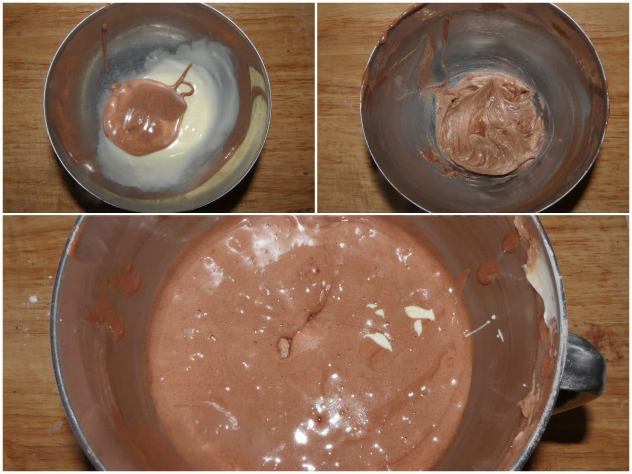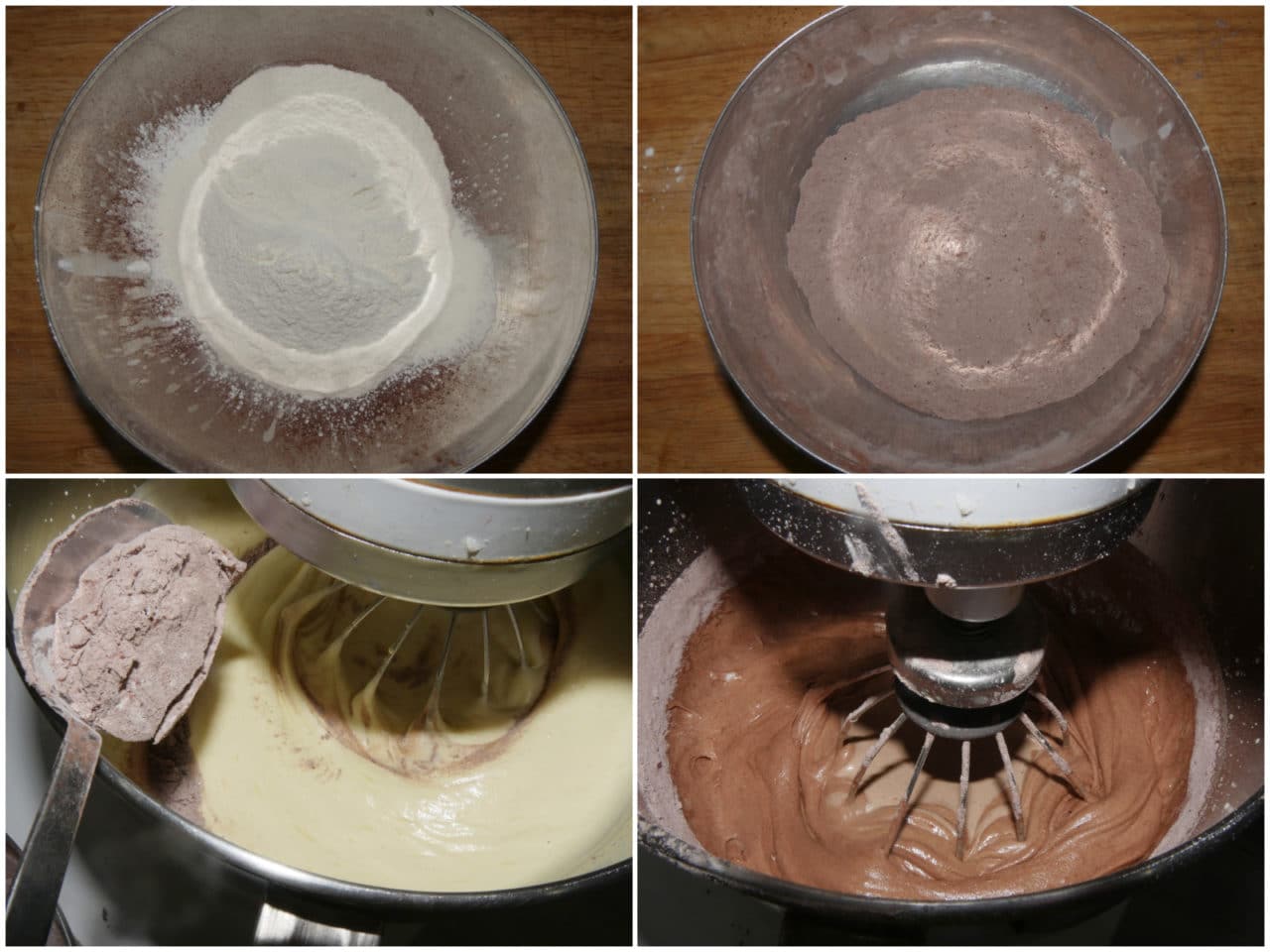 Unite in una ciotola cacao, maizena e farina setacciati e aggiungetene 1 cucchiaio per volta alle uova, continuando a montare.