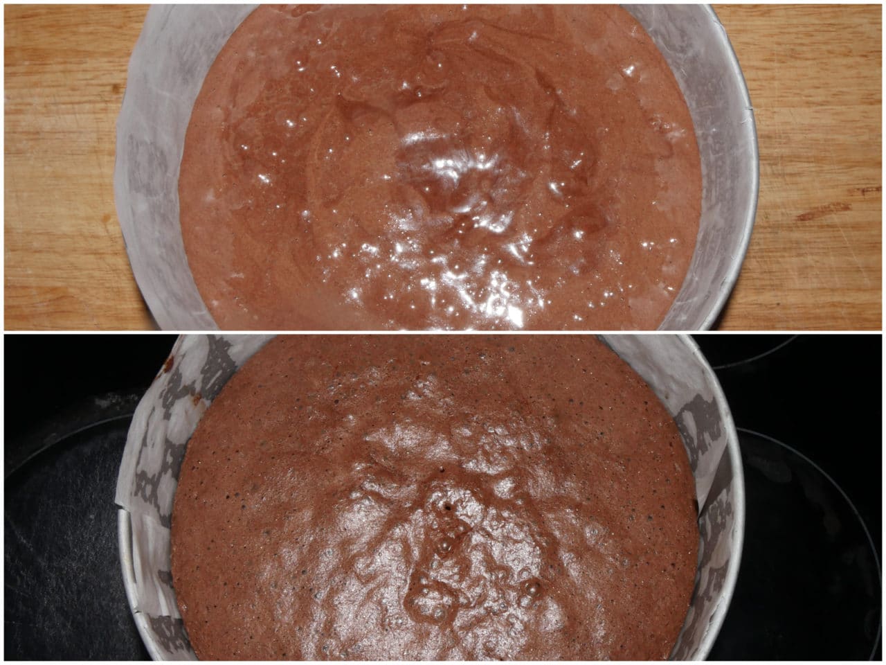 Versate la pastella nello stampo rivestito di carta forno e cuocete per circa 30 minuti in forno statico preriscaldato a 170°C (mi raccomando, fate sempre la prova stecchino prima di sfornare).