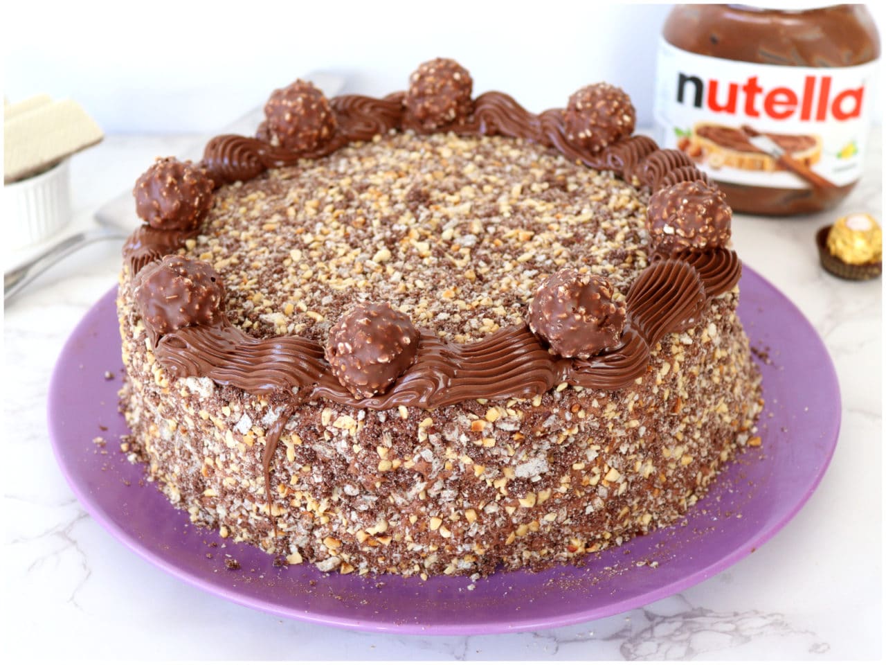 La torta Ferrero Rocher è pronta, non vi resta che servirla.