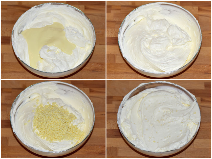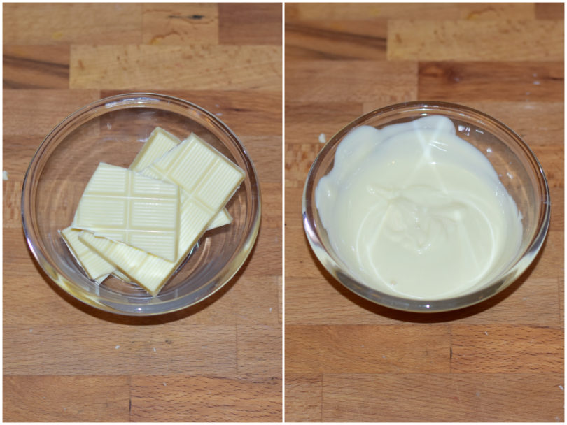 Innanzitutto spezzettate il cioccolato bianco e scioglietelo in microonde (o a bagnomaria).