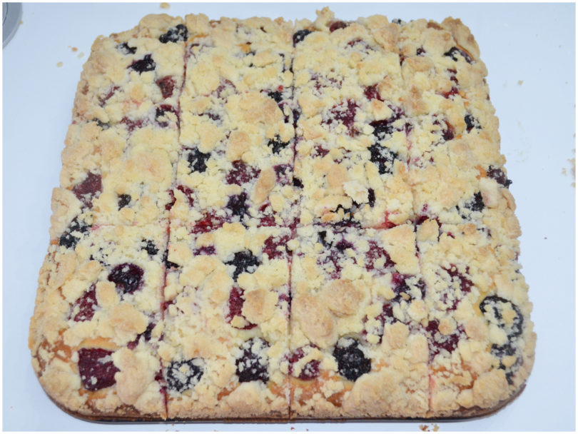La torta frutti di bosco e crumble è pronta per essere servita!
