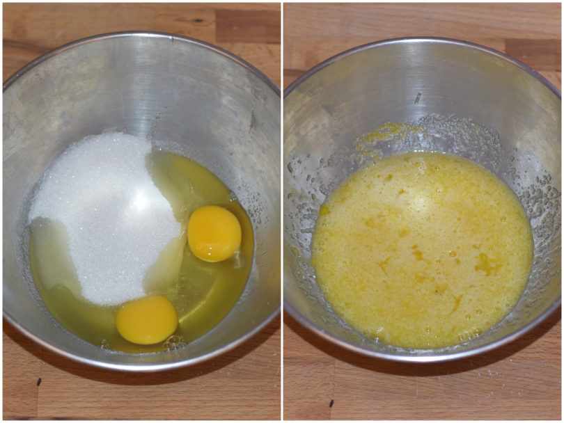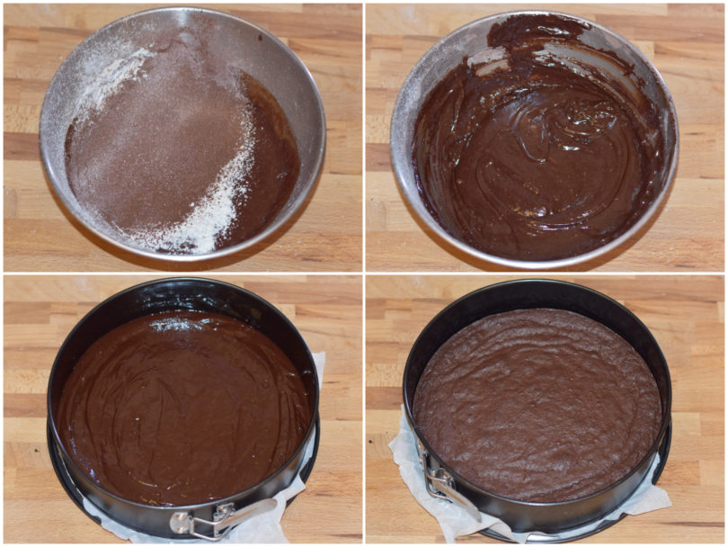 Versate nello stampo (imburrato e infarinato o rivestito di carta forno) e cuocete per circa 30 minuti in forno statico preriscaldato a 180°C, quindi lasciate raffreddare completamente.