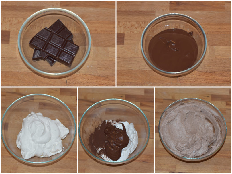 Per il gelato al cioccolato: sciogliete il cioccolato, lasciatelo intiepidire, poi incorporatelo insieme con il cacao a una delle vaschette di gelato da 300 gr, mescolando delicatamente con un movimento dal basso verso l'alto, quindi rimettete in frigo.