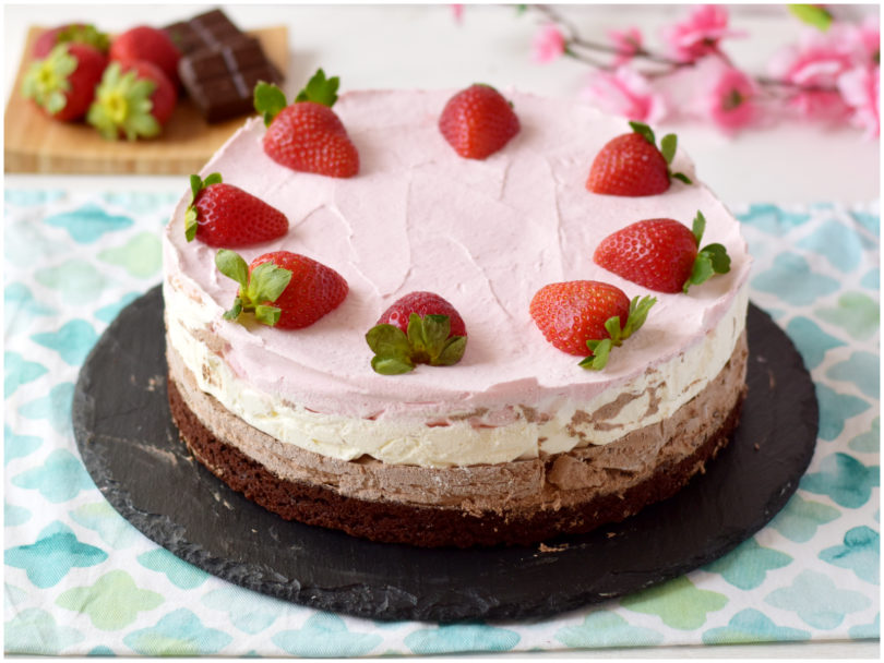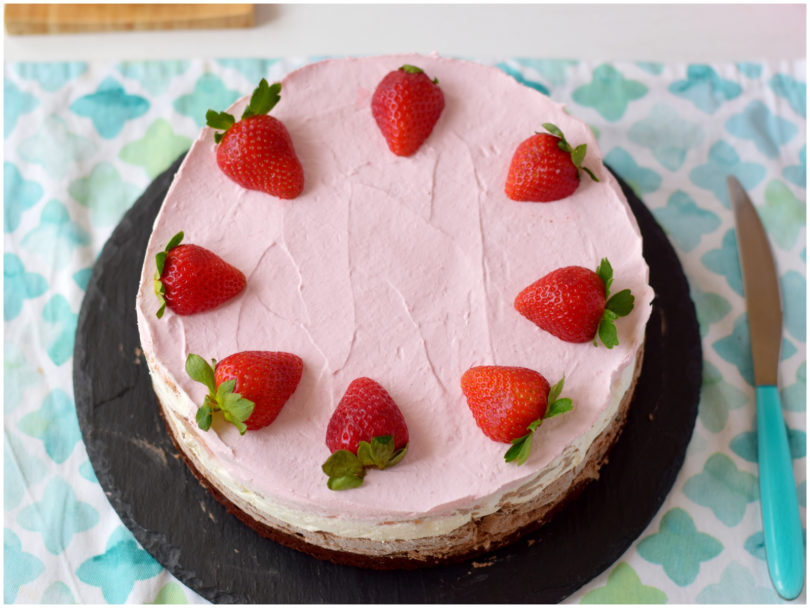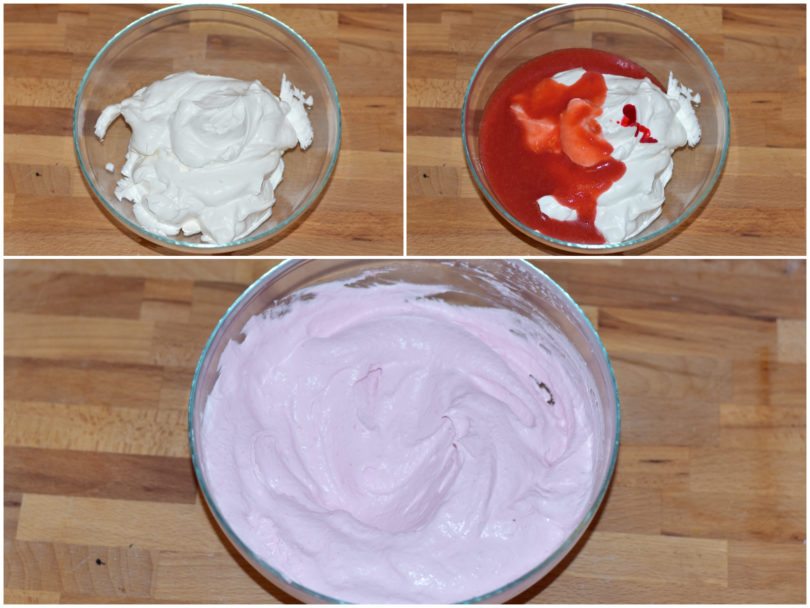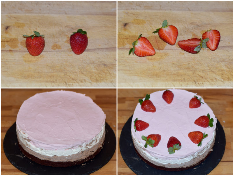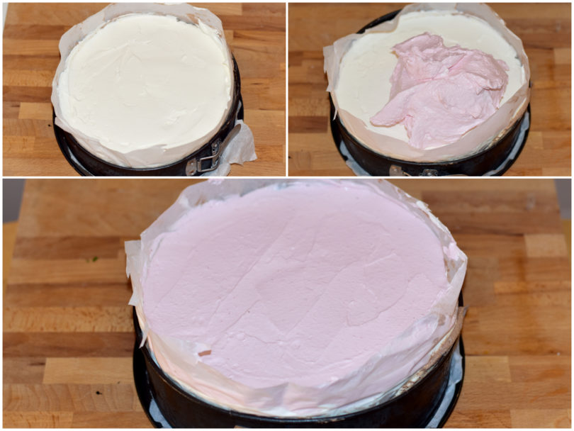 Infine create lo strato alla fragola, livellate e rimettete in freezer per tutta la notte.