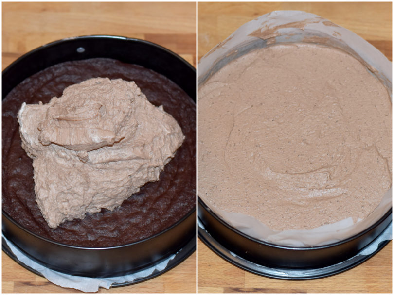 Riprendete lo stampo, aggiungete lo strato alla vaniglia, livellate e rimettete in freezer per 2 ore.