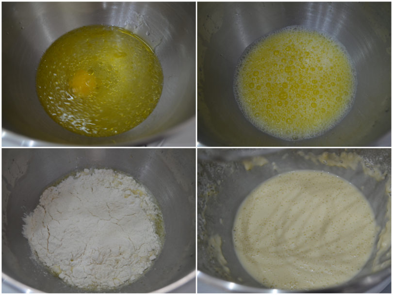 In una ciotola ampia, sbattete l'uovo con olio, vino e acqua, quindi unite anche sale, lievito e farina e amalgamate fino ad ottenere una pastella liscia e omogenea.