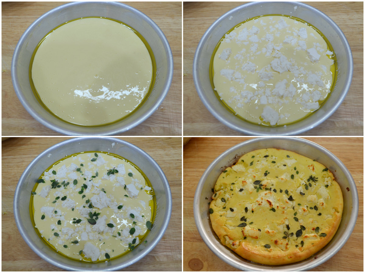 La torta greca con feta è una ricetta che ho visto qui e ho trovato così invitante da decidere di proporla anche a casa mia, riadattandola un po' a modo mio. Si tratta di una sorta di via di mezzo tra una focaccia e una torta rustica, rapidissima da preparare e davvero super saporita. Potete personalizzarla variando il tipo di formaggio (evitate solo quelli troppo freschi e ricchi di siero) e di erbe aromatiche, in modo da variare ogni volta che vi va!