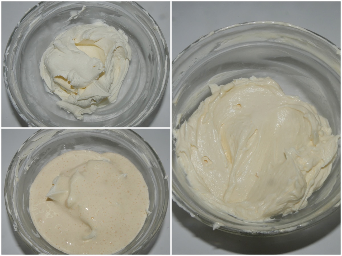 A parte, lavorate il mascarpone con delle fruste per ammorbidirlo, quindi incorporate 2-3 cucchiai di composto di uova.