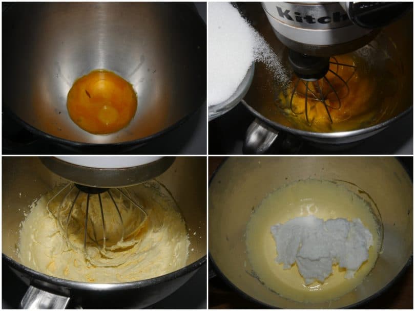 Poi aggiungete lo zucchero montando il tutto a velocità massima finché il composto non risulti spumoso.