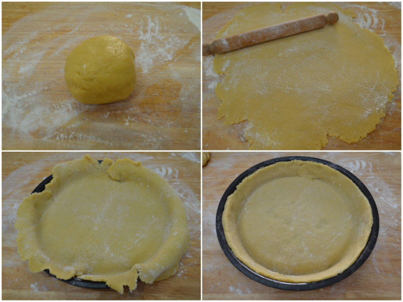 Riprendete la frolla, stendetela in un foglio abbastanza sottile e usatelo per foderare lo stampo per crostate leggermente imburrato.