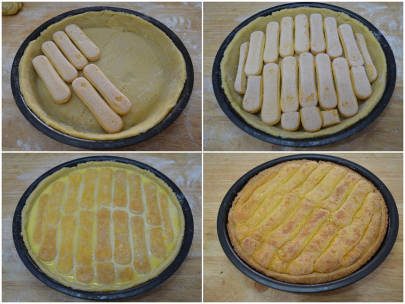 Carissima Musica ci sono però due punti che non si trovano con la ricetta. Il primo è una questione di presentazione del piatto: il savoiardi sono tradizionalmente sistemati a spina di pesce. La seconda invece riguarda il nome. La crostata portoghese è molto simile ma nel guscio di pasta frolla racchiude una preparazione di sola crema a cui si aggiunge farina di mandorle e Madera. Nella ricetta che proponi invece alla preparazione di latte e zucchero e uova si aggiunge Del liquore strega, liquore che si produce unicamente nella città di Benevento da cui prende anche il nome questa preparazione conosciuta come “crostata beneventana”.