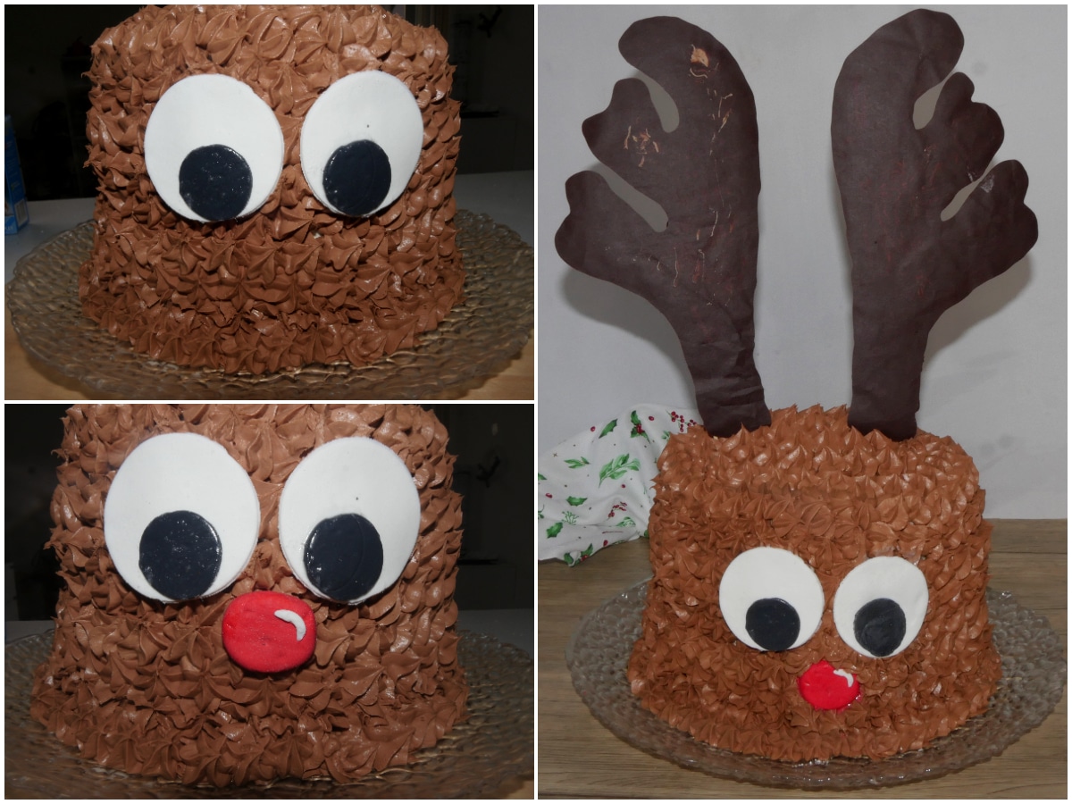 La torta renna, chiamata all'estero reindeer cake (ovvero, indovinate un po', torta renna), è una ricetta che ho visto da Lucake e che mi è subito piaciuta, sia per la semplicità dei singoli elementi che per la particolarità delle decorazioni, semplici e d'effetto come piacciono a me. Nell'impasto non c'è lievito per dolci, ma bensì un mix di aceto, latticello e bicarbonato che, nell'insieme, farà lievitare il vostro dolce proprio come se ci fosse il lievito! La farcitura, poi, è fatta con una crema al torroncino (simile alla mia ma più delicata) che ho trovato davvero deliziosa (anche se potete variarla con quello che vi pare, se preferite). L'idea è simpatica e originale, la preparazione un po' lunghetta ma non troppo difficile e il risultato molto natalizio, oltre che davvero buono... Per cui, che state aspettando?!