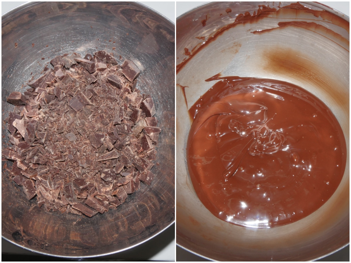 Preparate il frosting: innanzitutto sciogliete il cioccolato spezzettato (i 300 gr) in microonde o a bagnomaria.