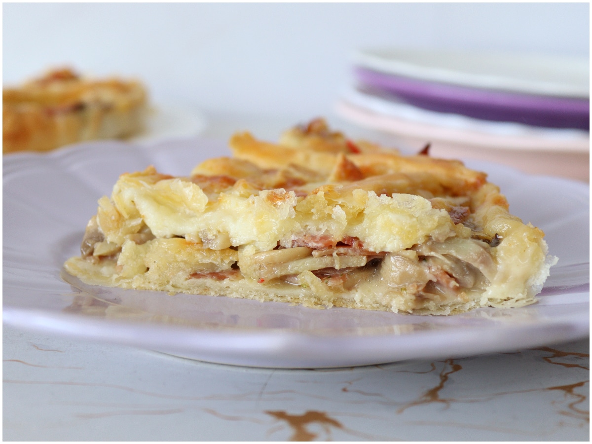Tagliare a fette la torta salata ai funghi e servire ;)