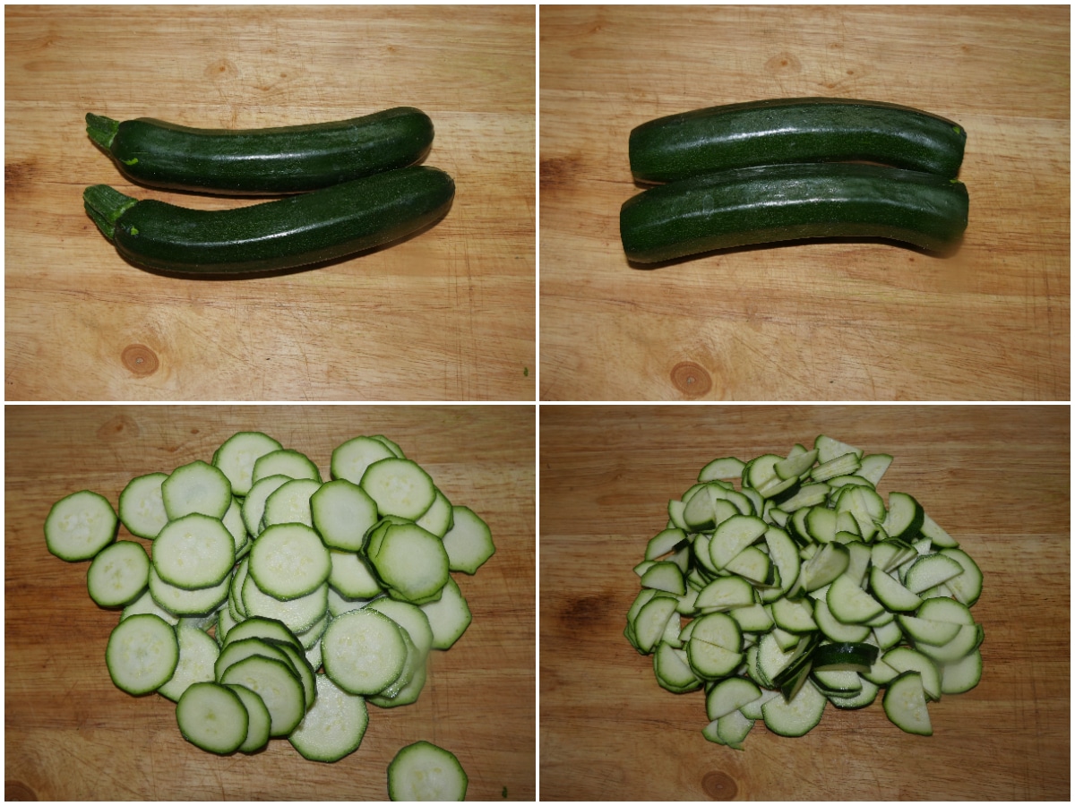 Lavate le zucchine, mondatele e tagliatele a rondelle sottili.