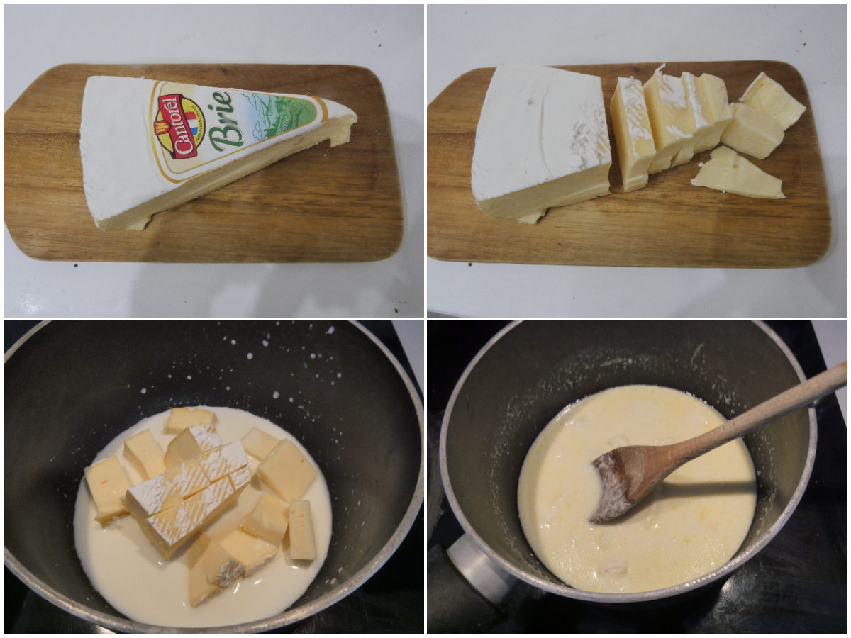 Tagliate il brie a fettine e fatelo sciogliere in un pentolino con il latte.