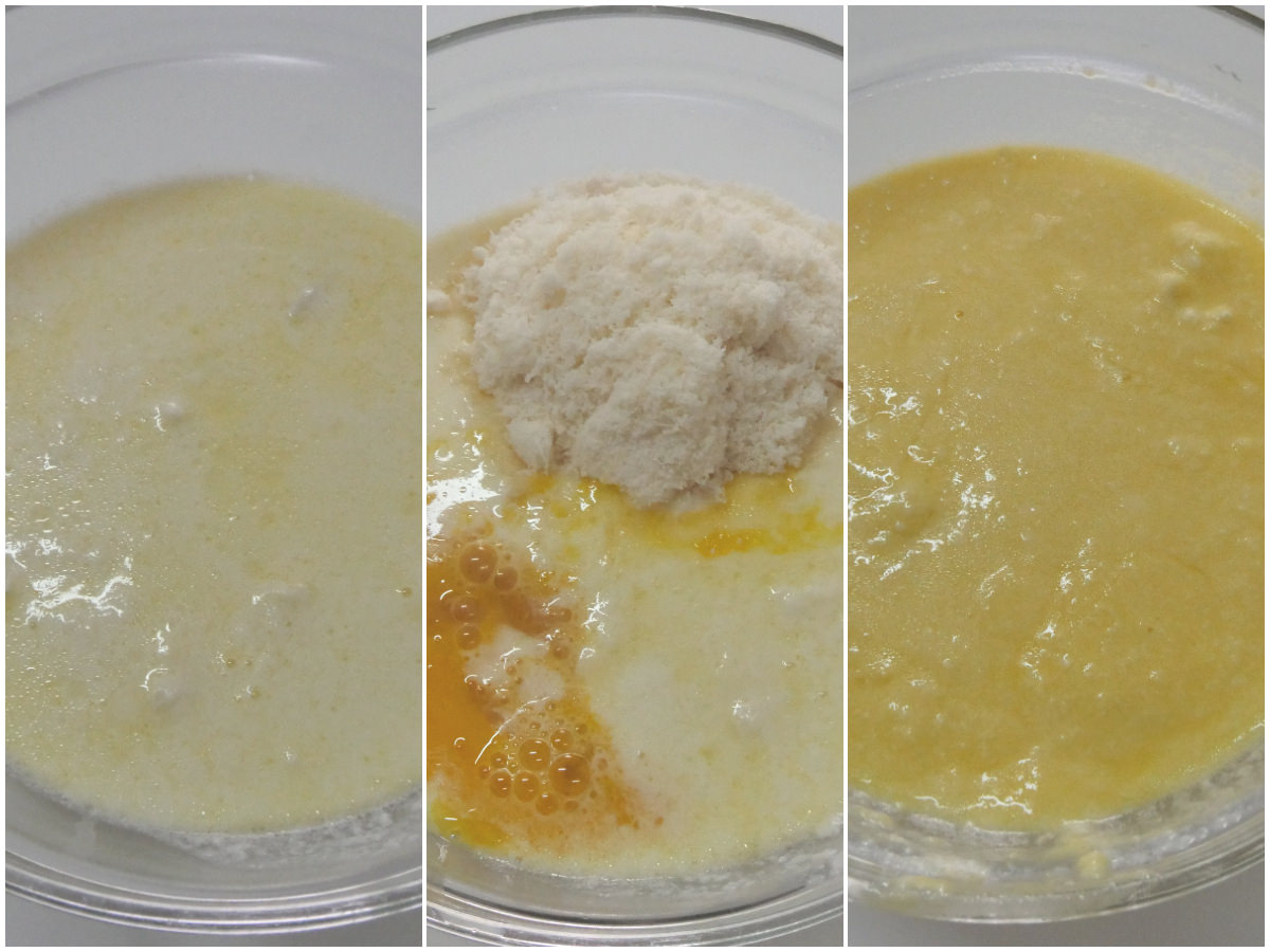 Fuori dal fuoco, aggiungete parmigiano e uovo sbattutto al composto: se volete potete aggiungere sale e pepe, secondo me la torta salata è abbastanza saporita già così, tra speck, brie e parmigiano.