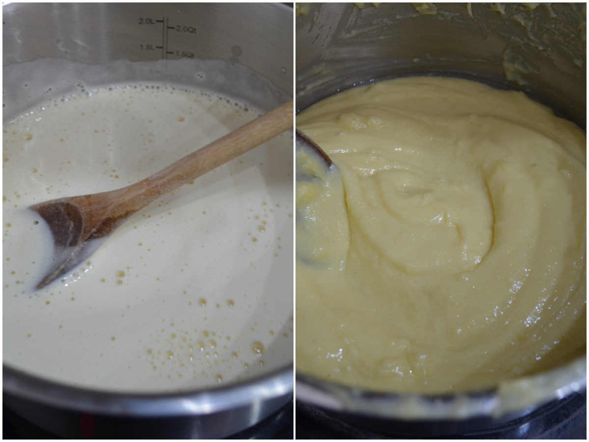 Versate il composto nel pentolino e portate nuovamente a bollore, facendo addensare continuando a mescolare.