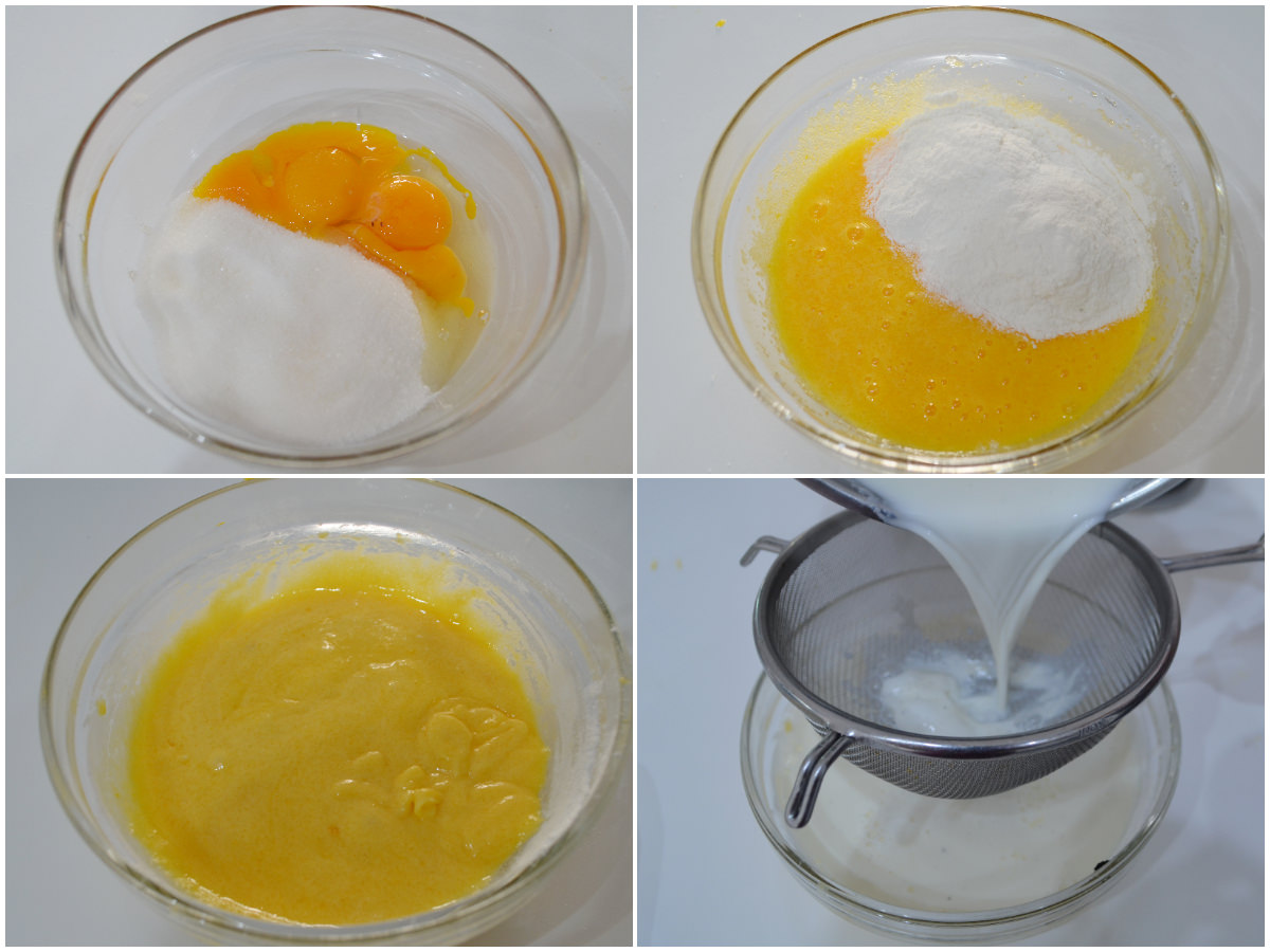 Sbattete i tuorli con lo zucchero, aggiungete la fecola di patate e mescolate.