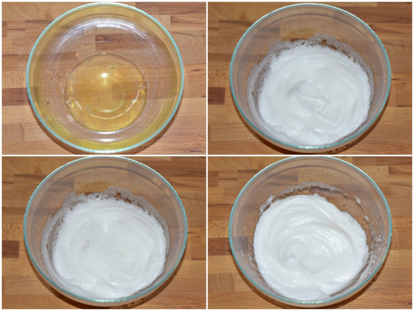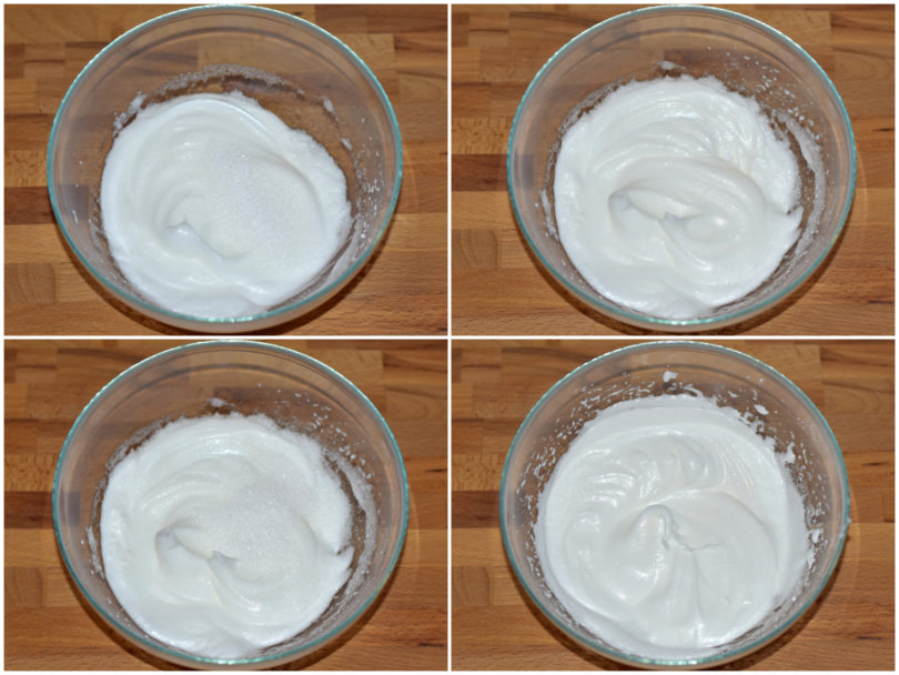 Innanzitutto separate i tuorli dagli albumi e montate questi ultimi a neve ferma con il sale aggiungendo poco per volta 50 gr di zucchero (presi dal totale) solo quando saranno già montati.