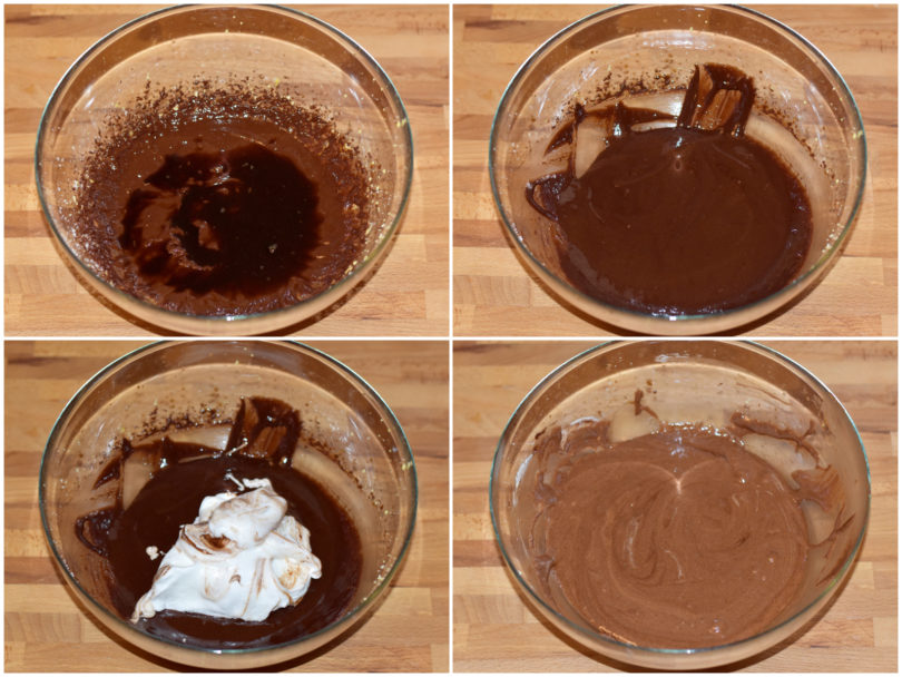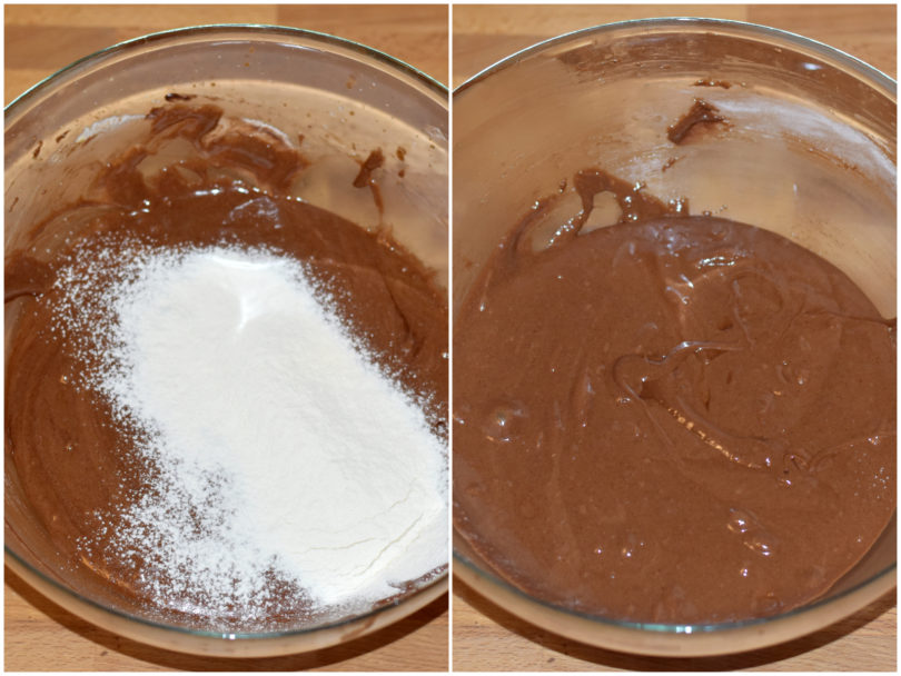 A questo punto unite prima il caffè, poi gli albumi, mescolando delicatamente per non farli smontare del tutto, e infine la farina setacciata.