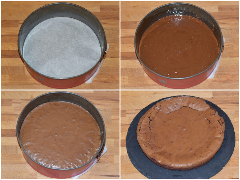 Versate il composto così ottenuto nella teglia rivestita di carta forno o imburrata e infarinata e cuocete per circa 25 minuti in forno statico preriscaldato a 180°C.