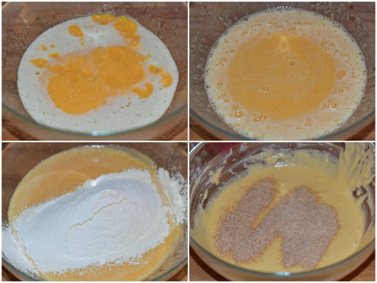 Quindi incorporate prima la purea di zucca, poi lievito e farina setacciati, e infine anche gli amaretti.