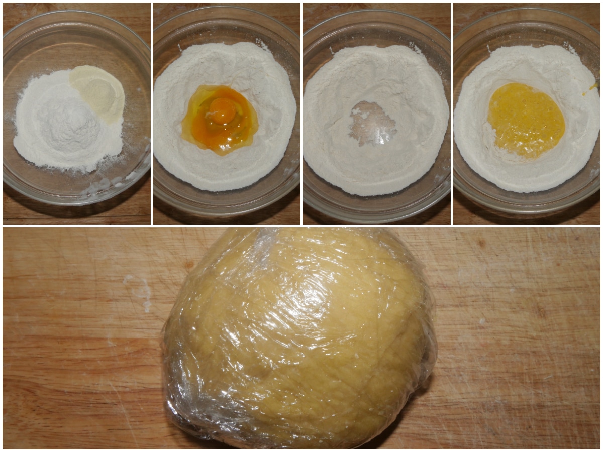 Innanzitutto create la pasta unendo in una ciotola farina, semola, uova e sale e lavorando velocemente fino ad ottenere un panetto omogeneo.