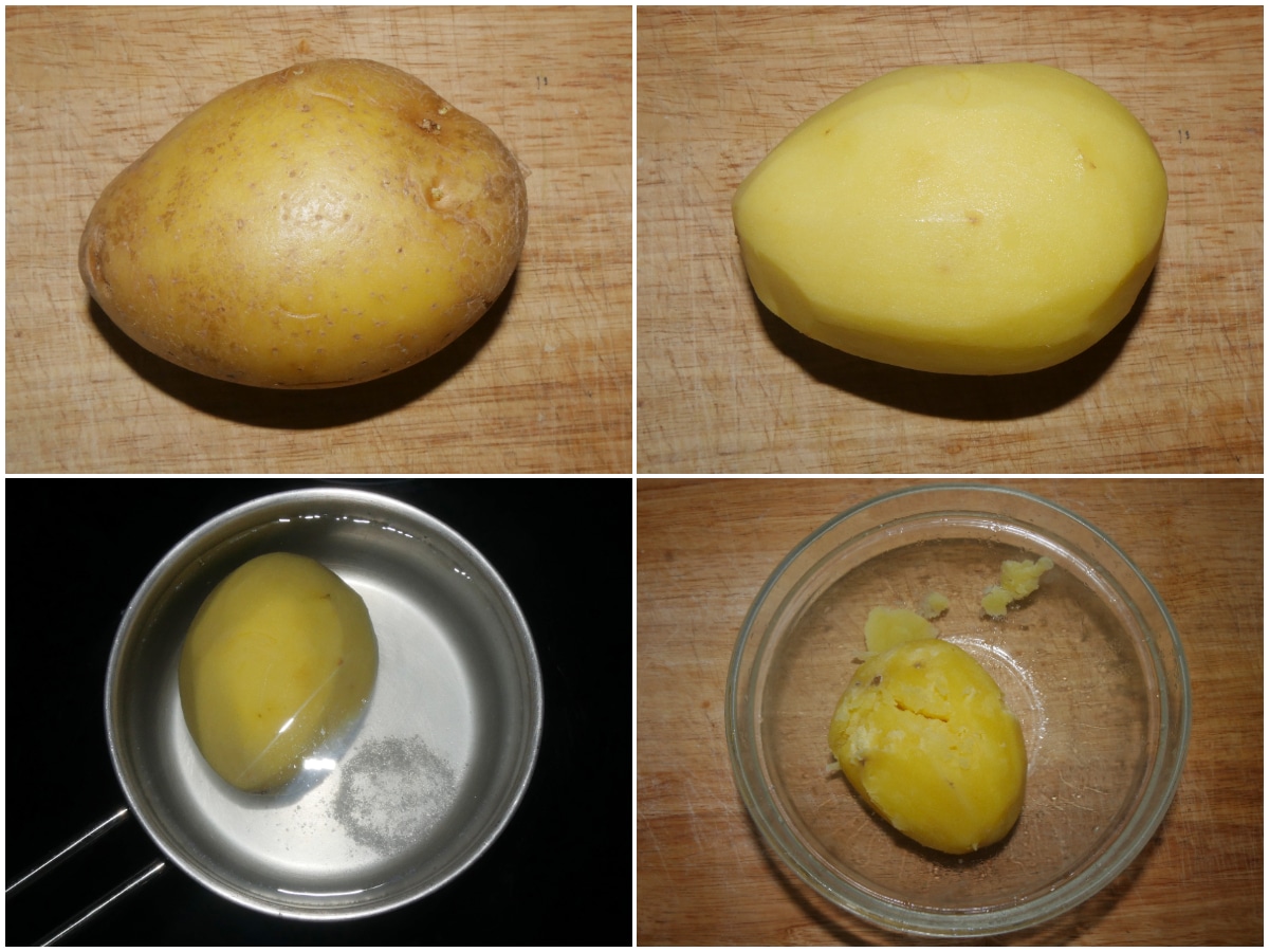 Nel frattempo preparate il ripieno: pelate la patata (o le patate), lavatela e lessatela per circa 35 minuti o finché non sarà morbida, quindi scolatela.