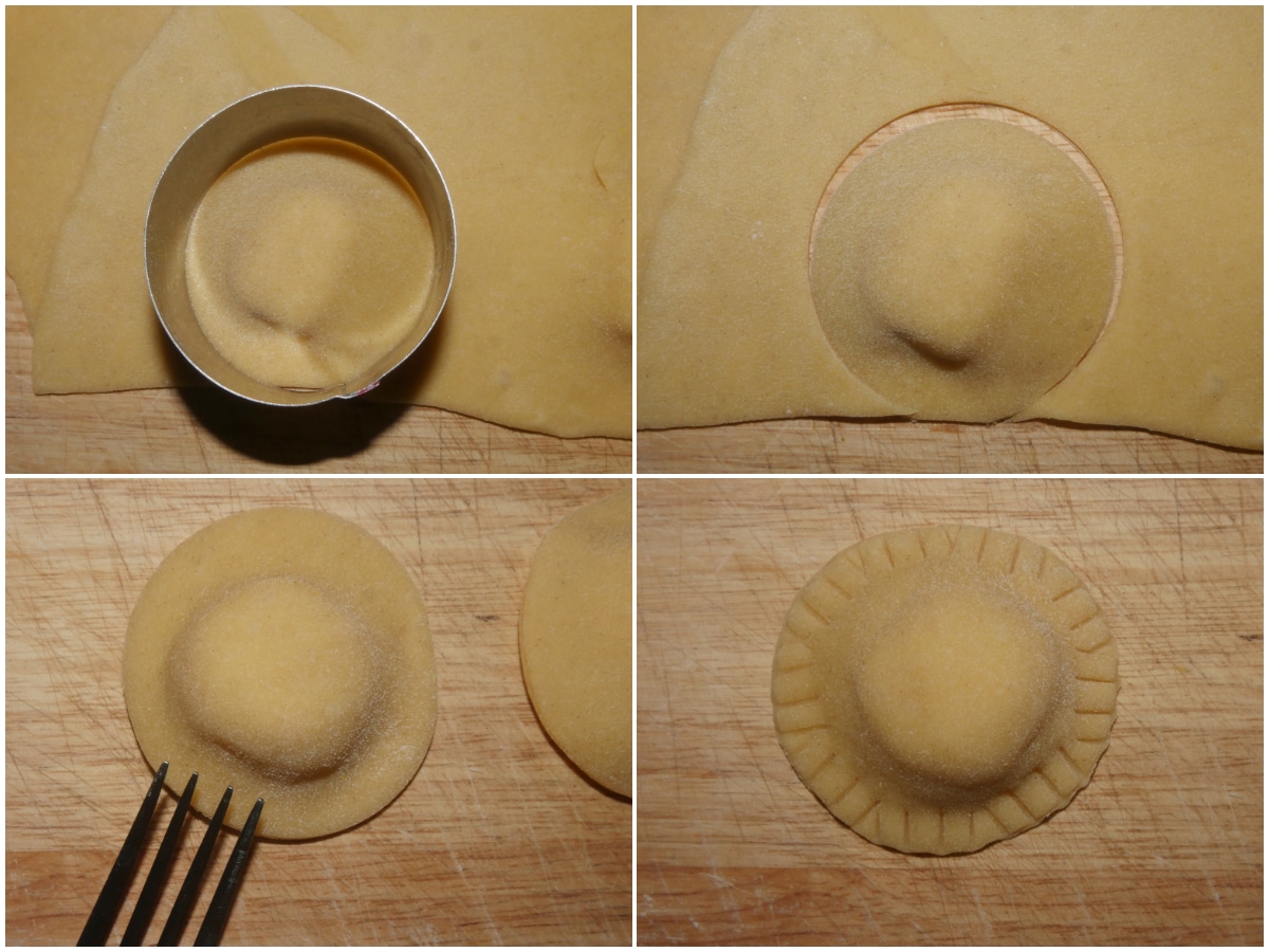 Create i tortelli con la formina e sigillate bene i bordi con i rebbi di una forchetta.