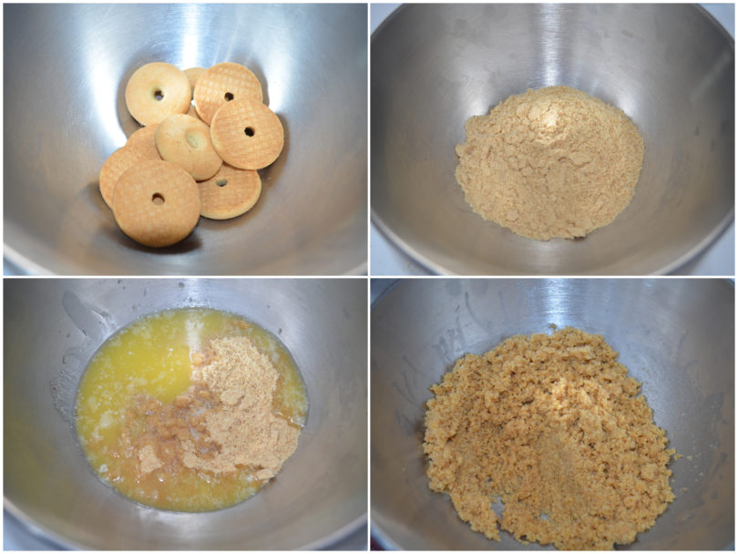 Tritate finemente i biscotti e uniteli al burro sciolto.
