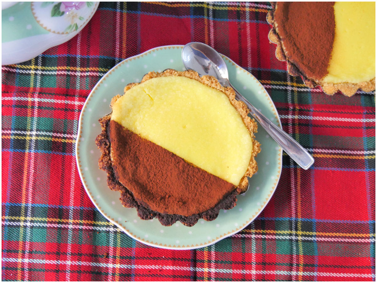 Le tortine allo zabaione sono pronte, spolverizzate con cacao amaro e servite.