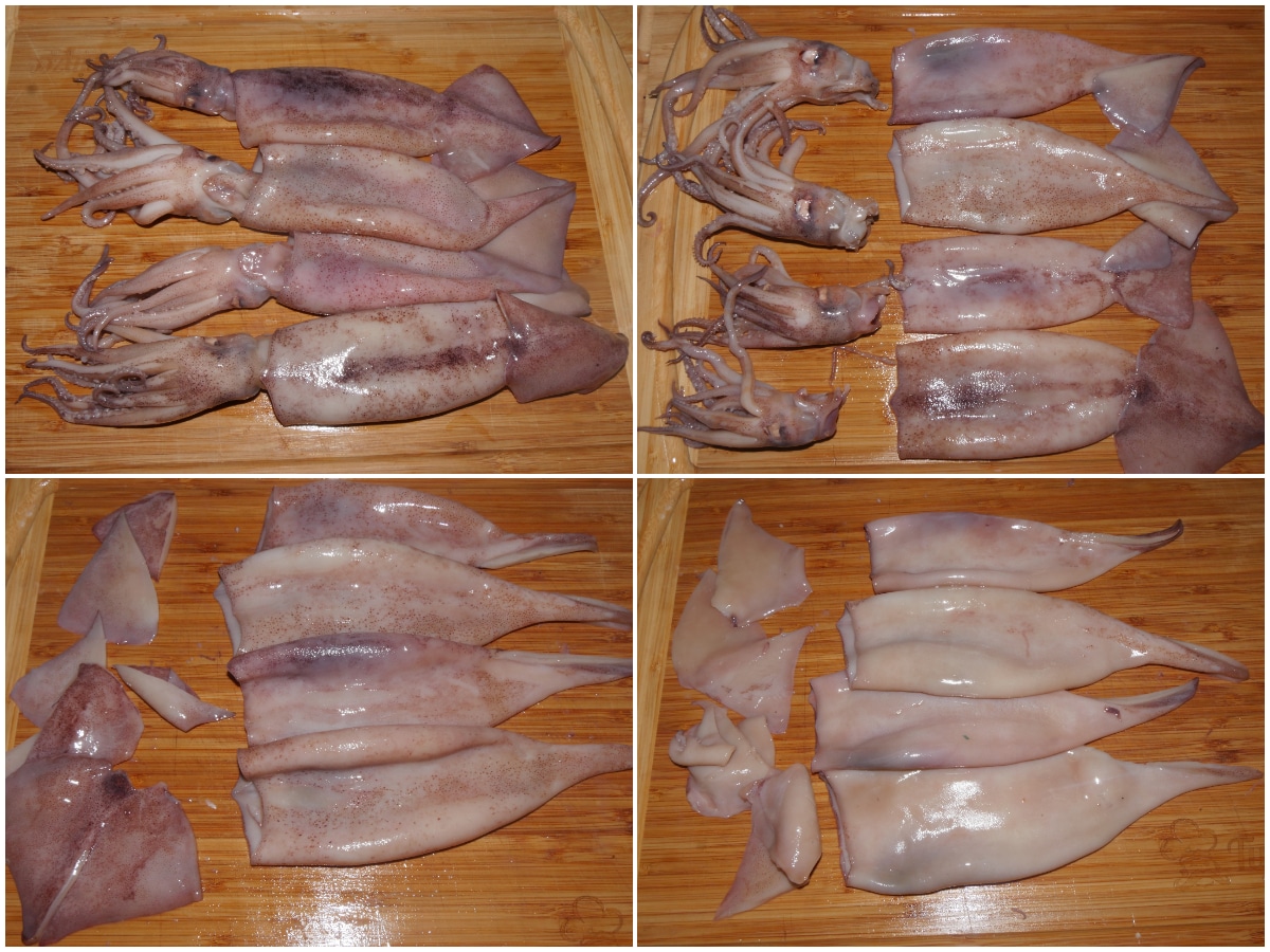I miei totani erano già puliti, mi sono limitata a separare la testa dai tentacoli e poi le alette dalla testa.