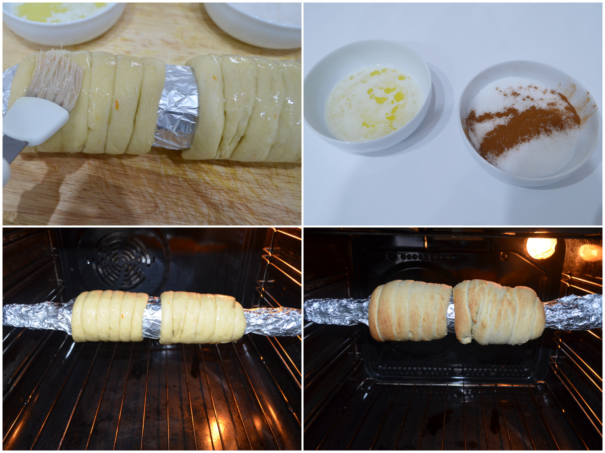 Una volta cotte, spennellate di nuovo con burro fuso e spolverizzate nuovamente con lo zucchero alla cannella.