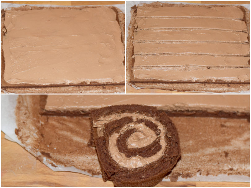 Prendete la prima striscia e arrotolatela delicatamente per creare una girella, con la crema nel lato interno.