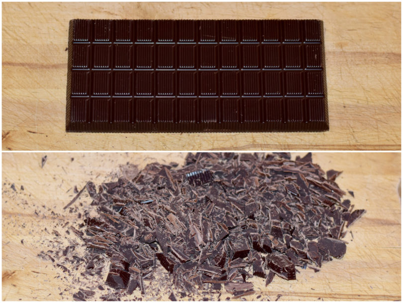Preparate la ganache: mettete a scaldare la panna in un pentolino, e intanto tritate il cioccolato.