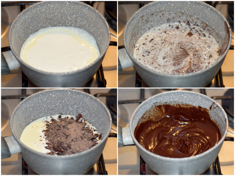 Quando la panna sarà quasi al punto di ebollizione, spegnete, aggiungete il cioccolato e mescolate fino ad ottenere una crema liscia.