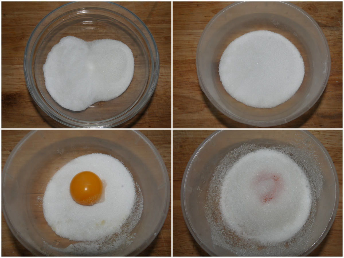 Mescolate sale e zucchero insieme e mettetene metà in una ciotola.