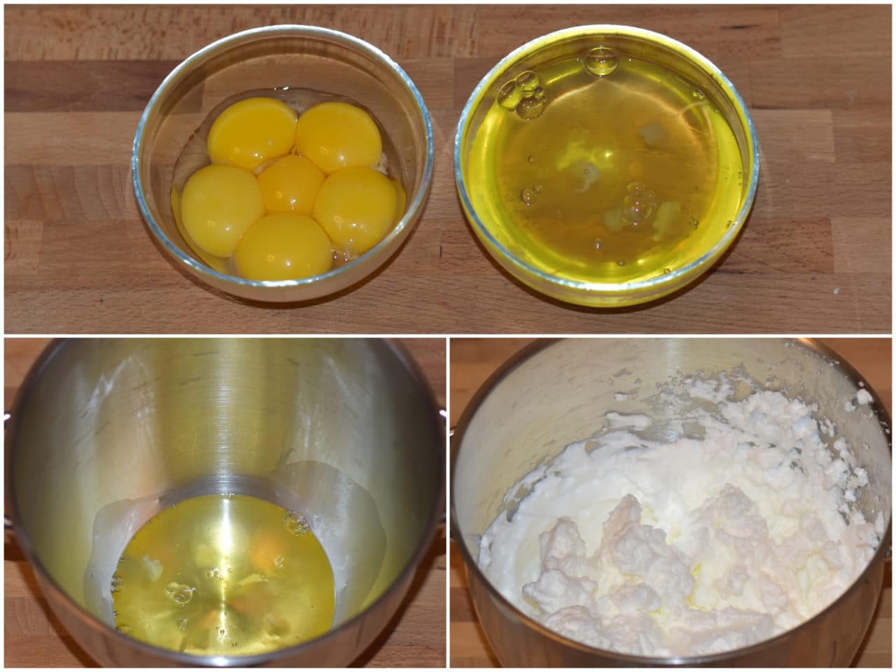Innanzitutto preparate il pan di Spagna: separate tuorli e albumi e montate questi ultimi a neve ben ferma.