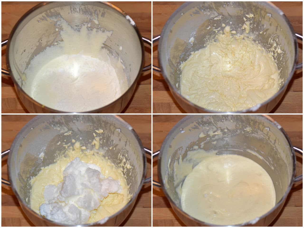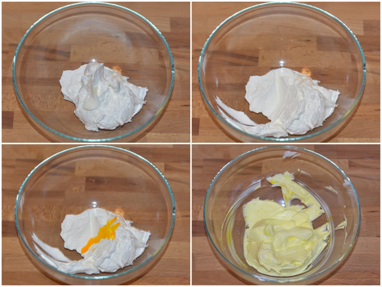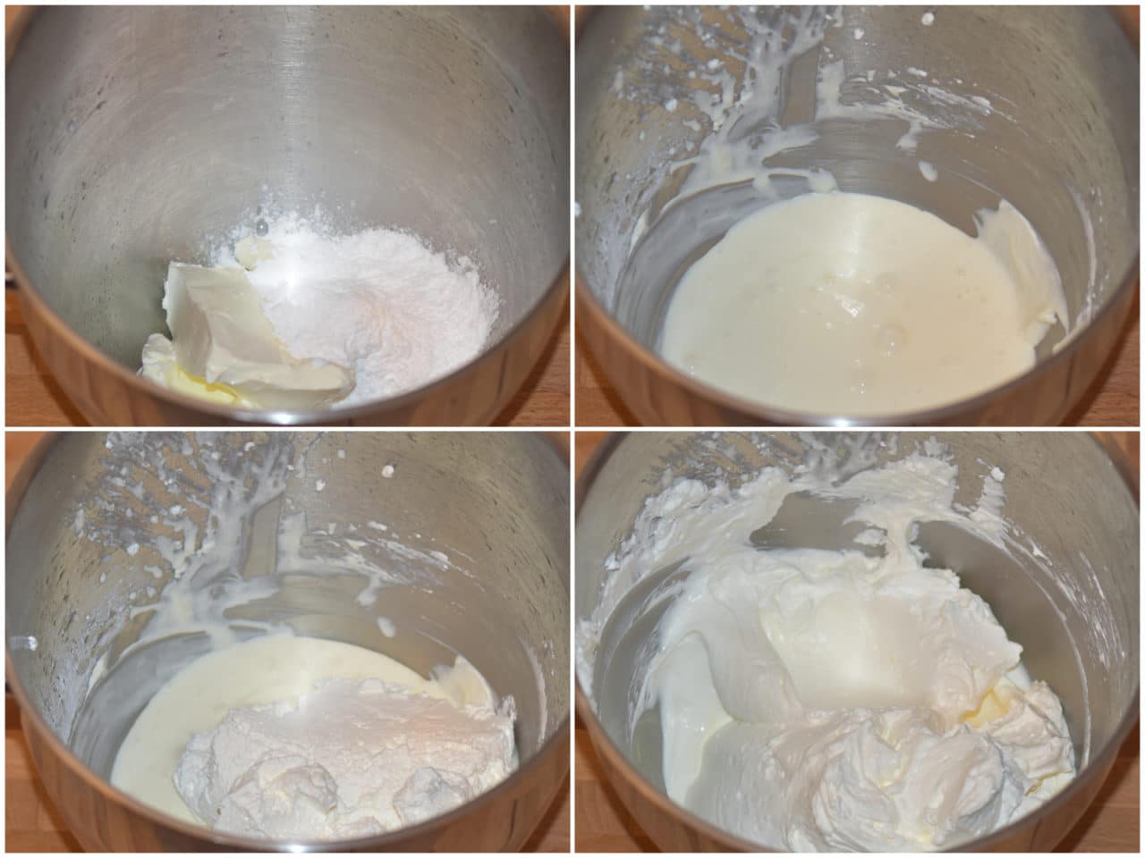 Lavorate il formaggio con lo zucchero, poi incorporate anche la panna, delicatamente, in modo da non farla smontare.