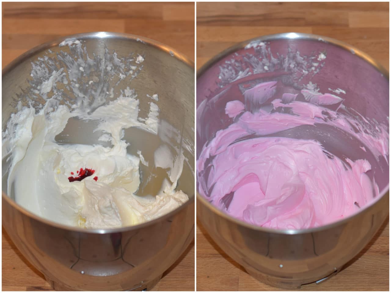 Infine colorate il frosting restante, quello che vi servirà per glassare la torta (io l'ho fatto rosa, in perfetto stile misyano).