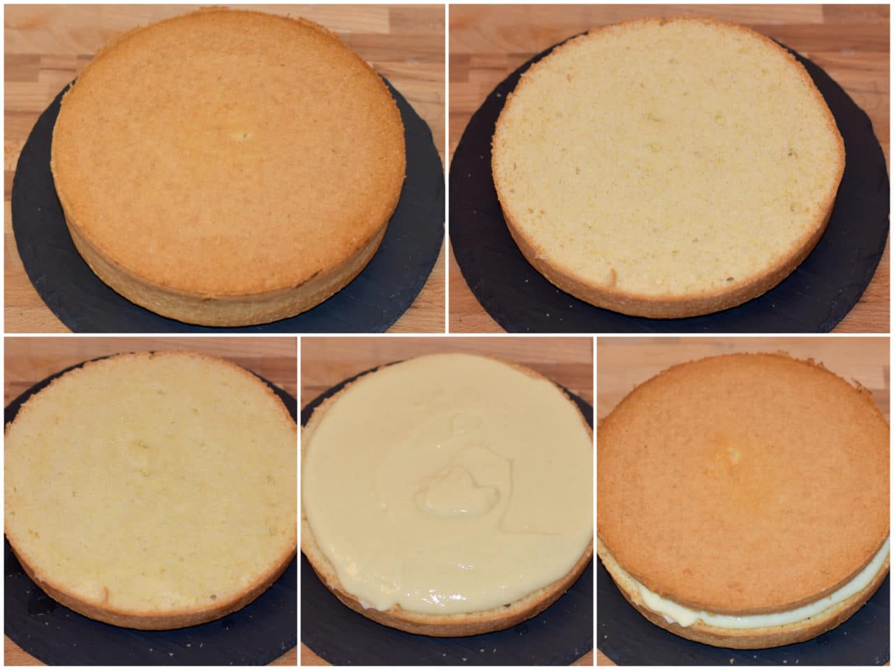 Tagliate il pan di Spagna ormai freddo a metà orizzontalmente.