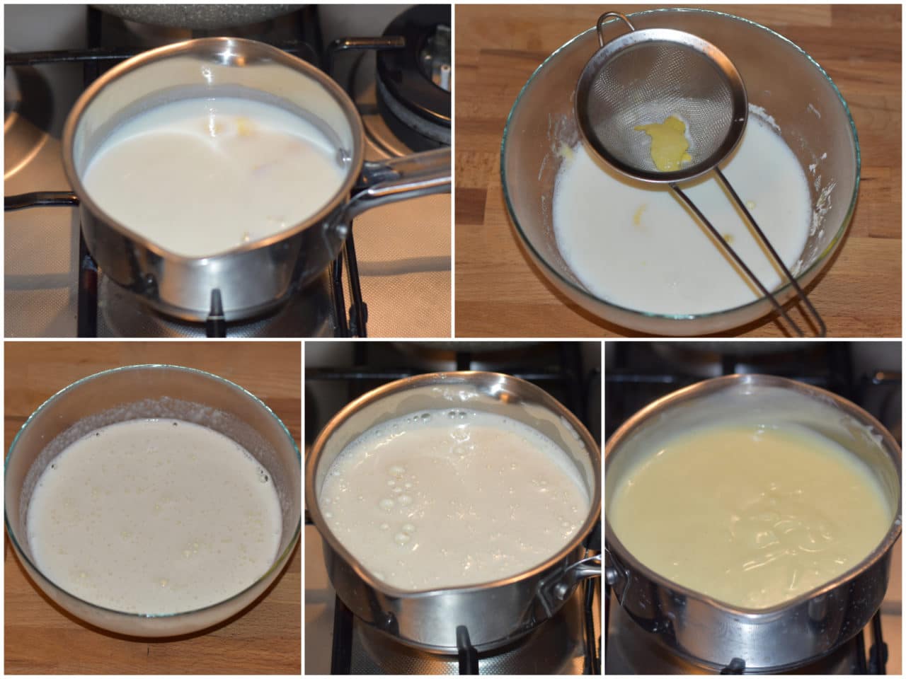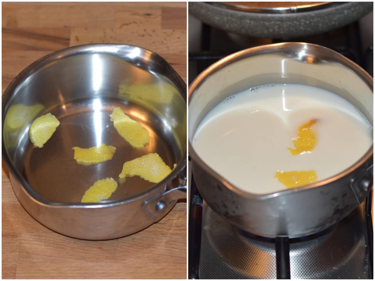 Preparate quindi la crema pasticciera: scaldate il latte con la buccia di limone.