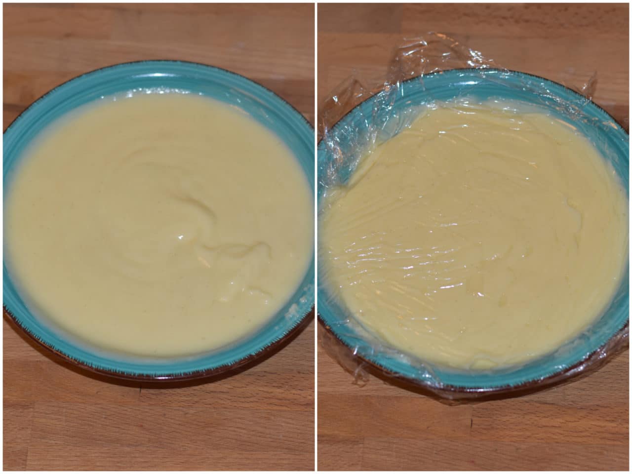 Trasferite in una ciotola, coprite con pellicola a contatto, in modo che non si crei pellicola da ossidazione sulla superficie, e lasciate raffreddare completamente.