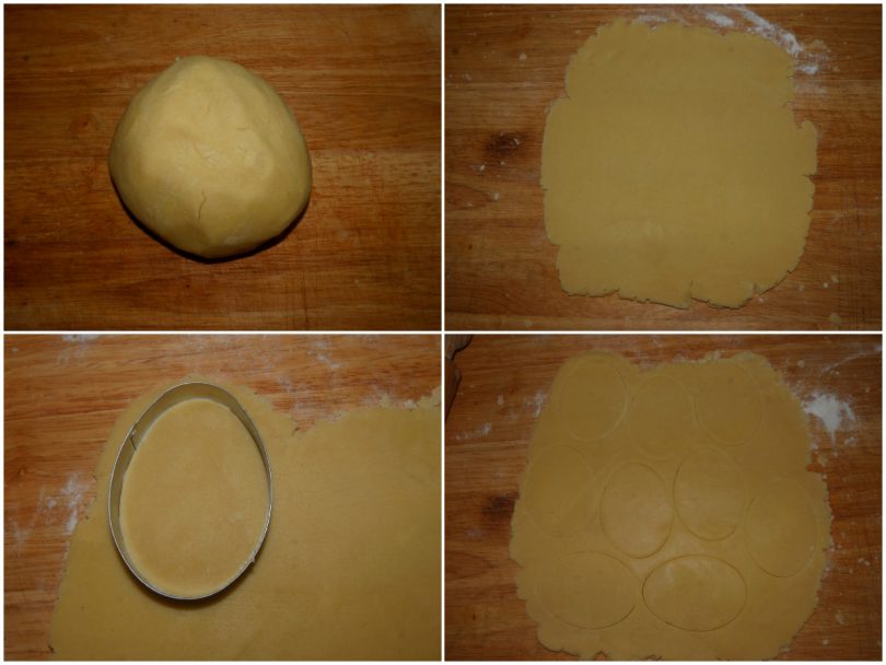 Riprendete il panetto e stendetelo in una sfoglia sottile (circa 0,5 mm), quindi ricavate i vostri ovetti con una formina tagliabiscotti (la mia era da 7-8 cm).