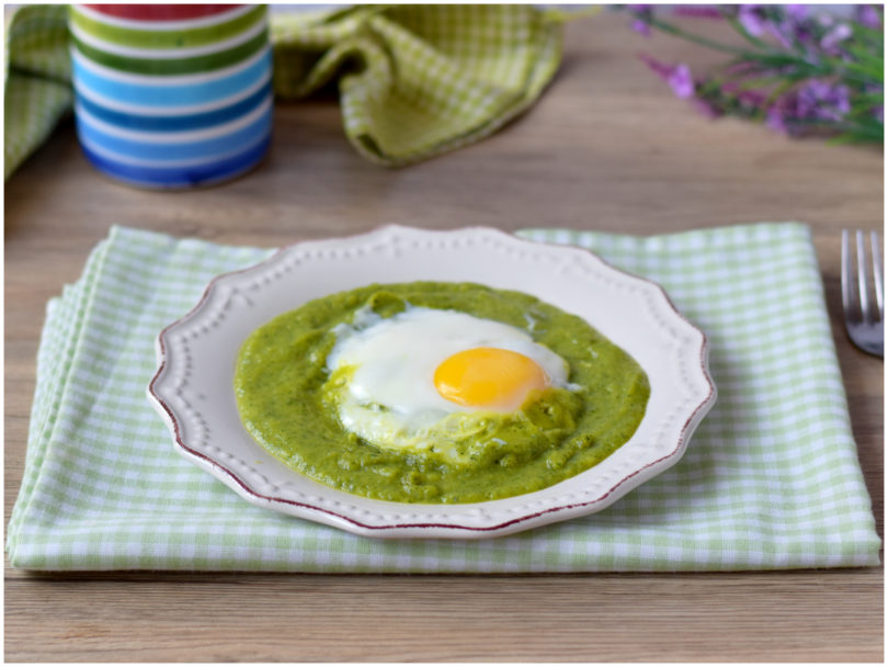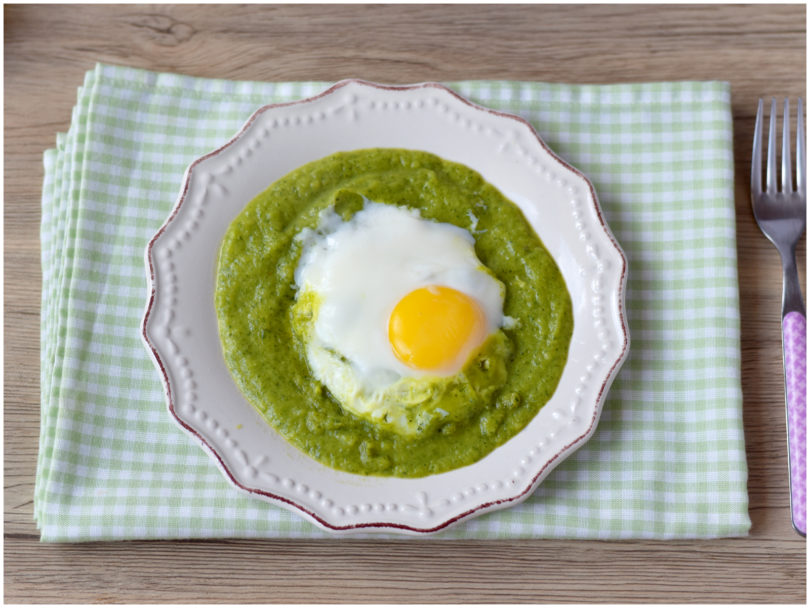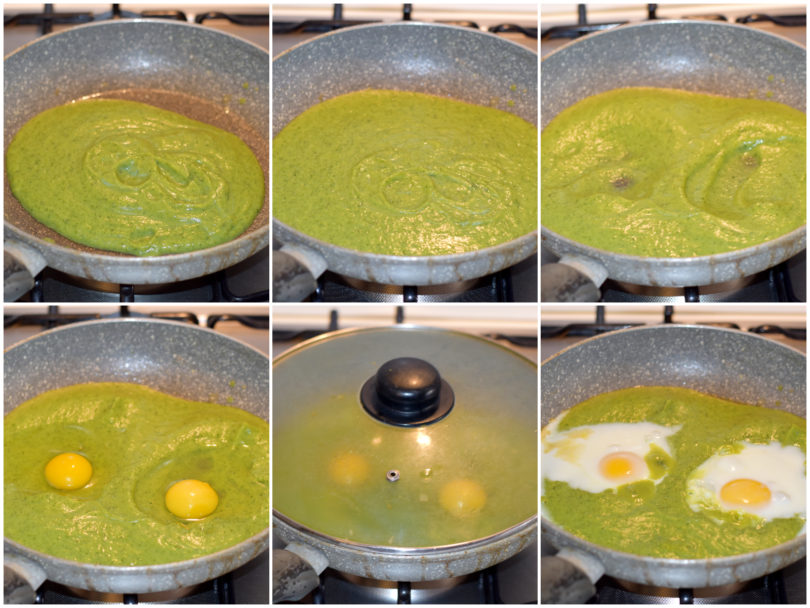 Rimettete la crema nella medesima padella, create 2 incavi e versateci dentro le uova, coprite con coperchio e lasciate cuocere a fiamma bassa per circa 10 minuti o finché l'albume non risulterà ben cotto.