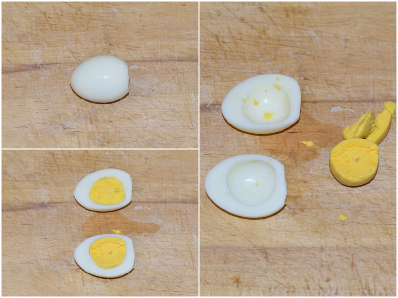 Sgusciatele, tagliatele a metà e staccate delicatamente i tuorli dagli albumi.