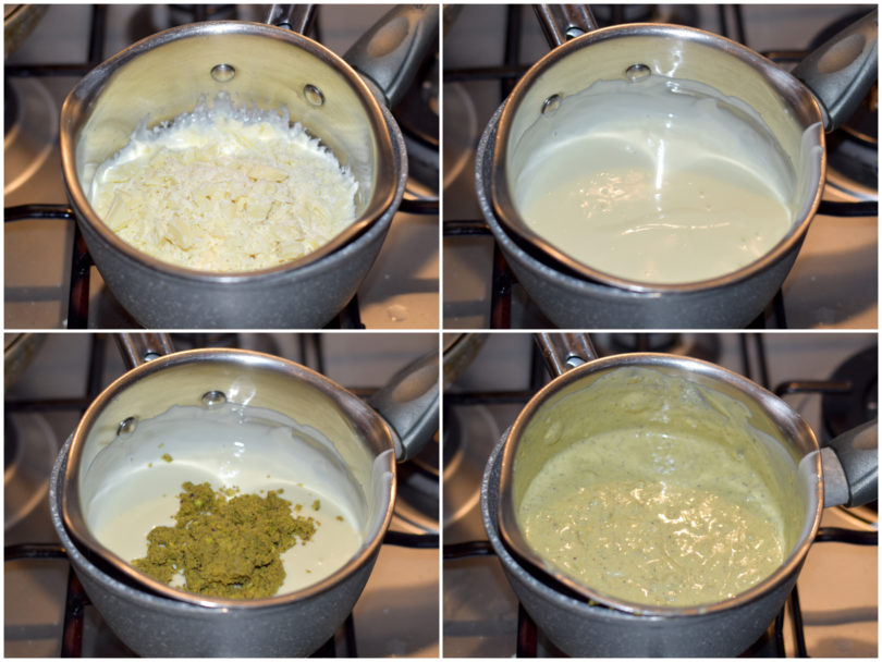 Una volta sciolto, incorporate la pasta di pistacchi e mescolate bene.