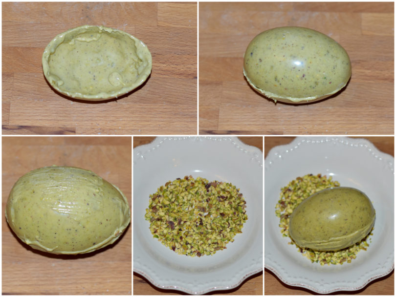L'uovo di Pasqua al pistacchio è pronto, non vi resta che servirlo.